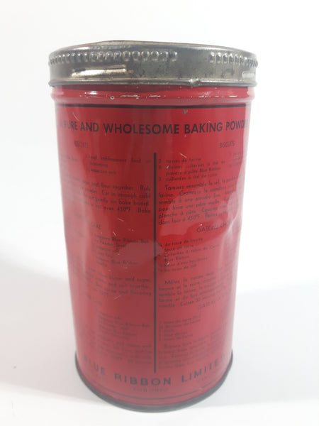 Vintage Blue Ribbon Double Action Baking Powder 16 oz. Red Tin Metal Canister with Lid