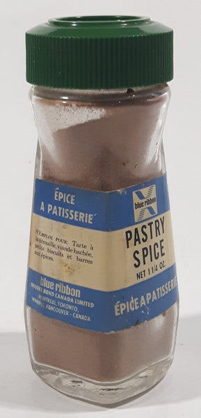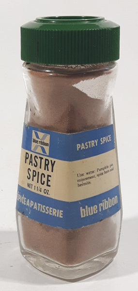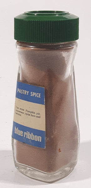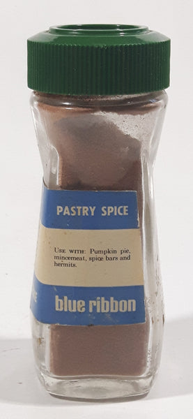 Vintage Blue Ribbon Pastry Spice Net 1 1/4 Oz. 4 1/4" Tall Glass Spice Jar