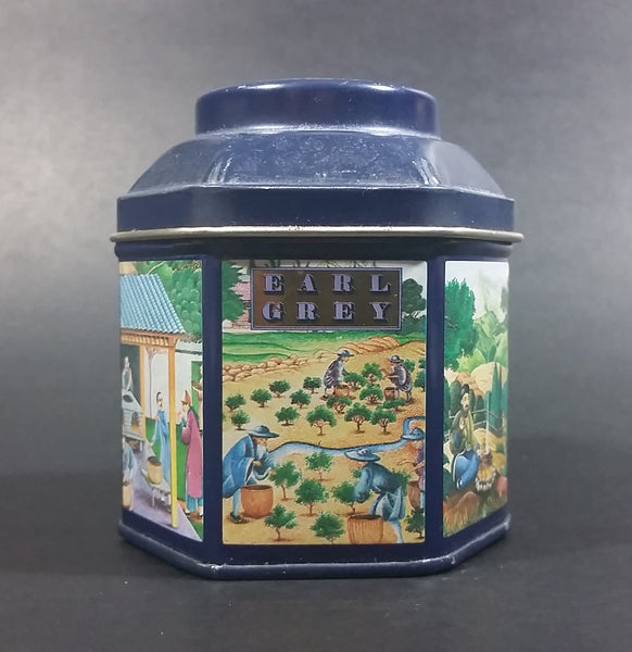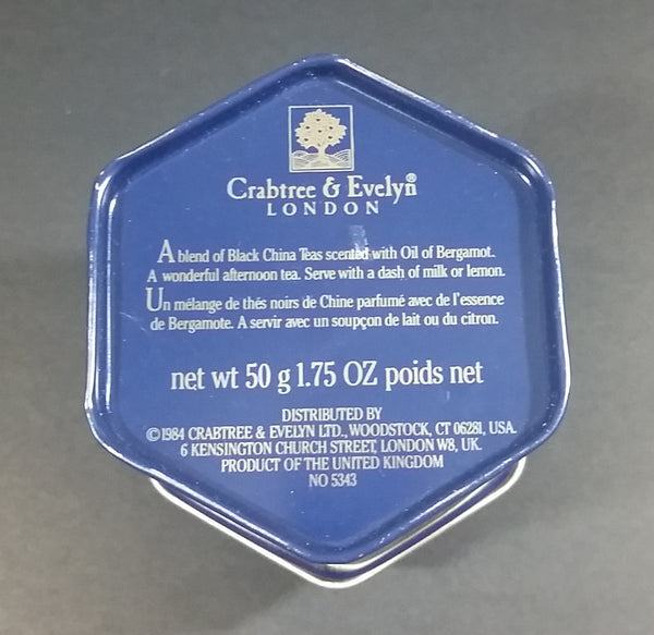 1984 Earl Grey Tea Crabtree & Evelyn London Hexagon Shaped Blue Tea Tin Collectible