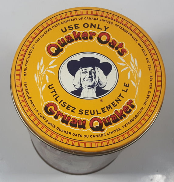1992 The Quaker Oats Company Quaker Tolled White Oats Replica 1896 Label 8" Tall Tin Metal Canister