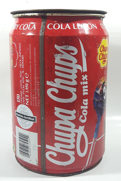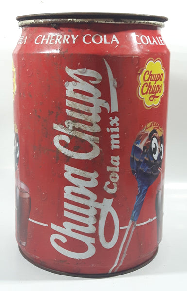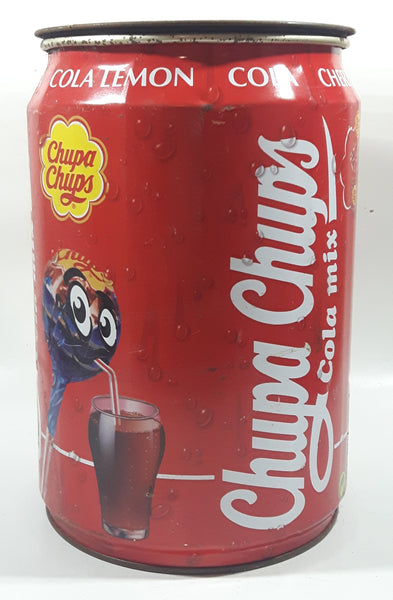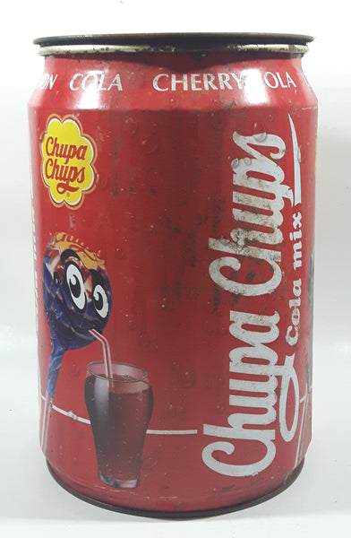 1997 Chupa Chups Cola Mix Cola Lemon Cherry Cola Red 10" Tall Metal Can Shaped Container