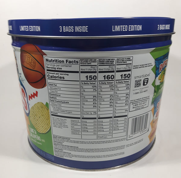 2021 Frito-Lay Ruffles Potato Chips Limited Edition Jayson Tatum Lebron James Anthony Davis Basketball Players Own Your Ridges 8" Tall Tin Metal Canister EMPTY