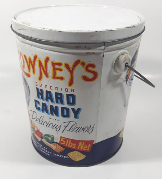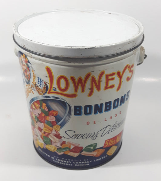 Antique Lowney's Superior Hard Candy with Delicious Flavors 5 Lbs Tin Metal Can Pail with Lid Sherbrooke, Quebec, Canada