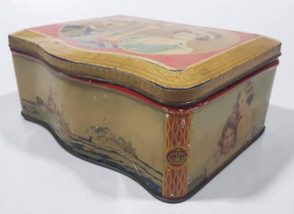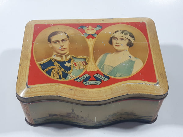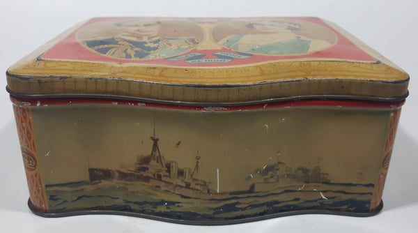 Antique Peek Frean & Co Ltd May 12, 1937 Coronation King George VI Queen Elizabeth The Queen Mother Tall Tin Metal Container