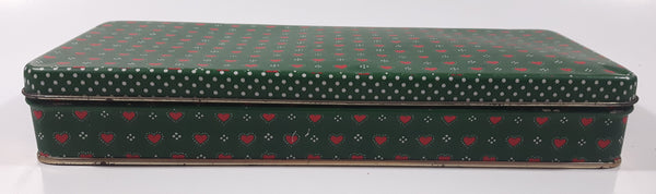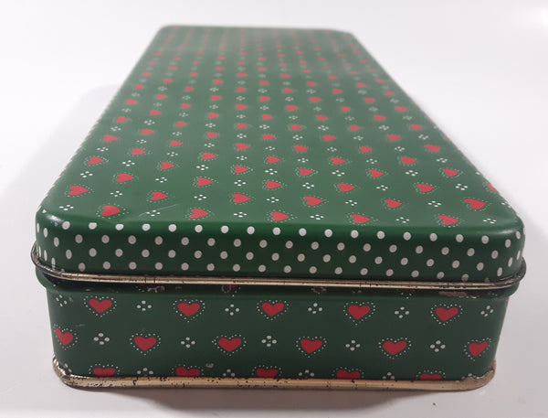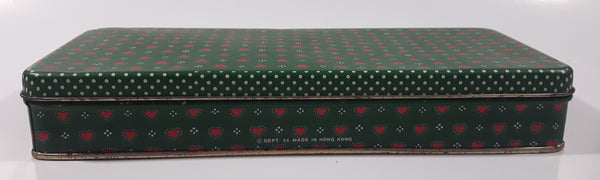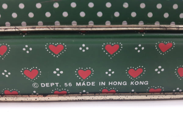 Dept 56 Red Heart Themed Green Tin Metal Container Made in Hong Kong