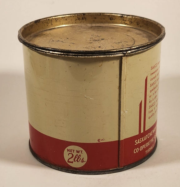 Vintage 1940s Sasco Honey 2 Lb Tin Metal Can Saskatchewan Honey Company Tisdale, Saskatchewan
