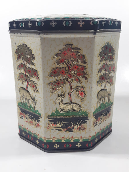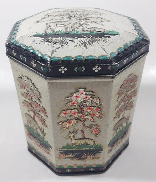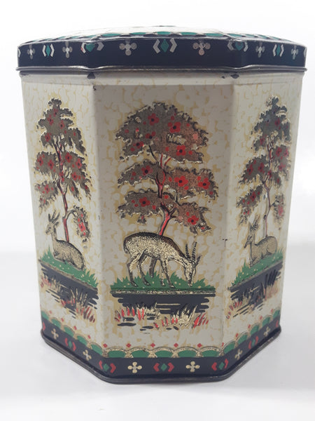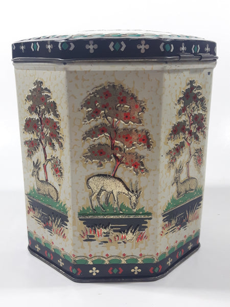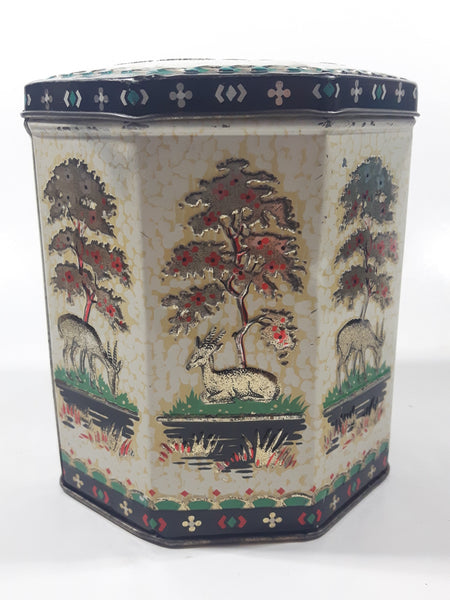 Vintage 1950s Peek Frean & Co Ltd London England Embossed Deer in Nature 5 1/2" Tall Tin Metal Container