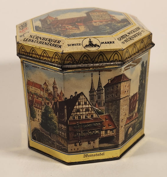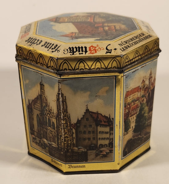 Vintage German Nurnberger Lebkuchenfabrik Gottfr Wicklein Nurnberg Octagonal Hinged Tin Metal Container