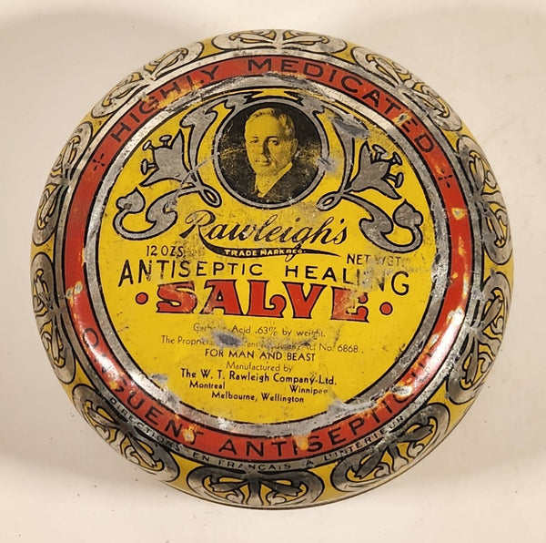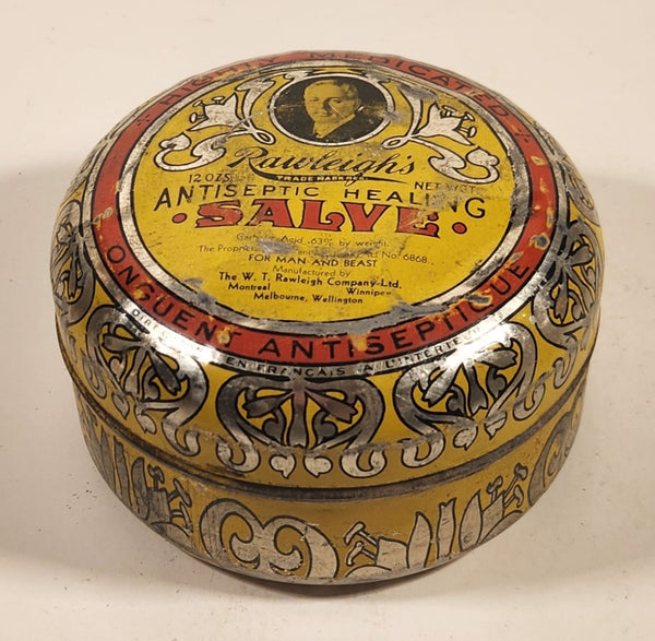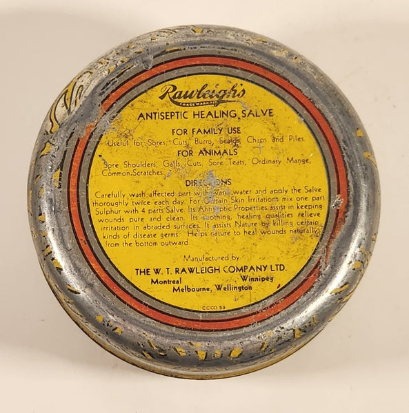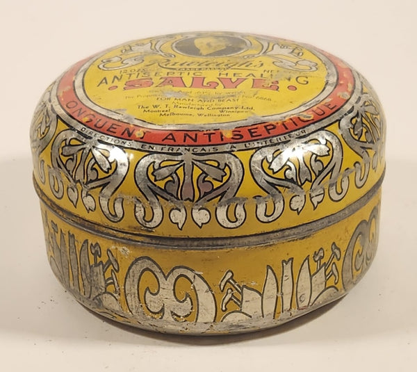 Vintage The W. T. Rawleigh Company Ltd Montreal Winnipeg Melbourne Willington Rawleigh's Antiseptic Healing Salve High Medicated Tin Metal Container