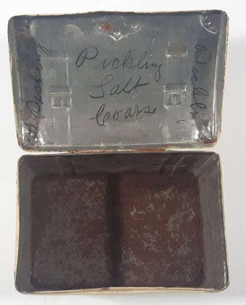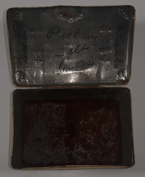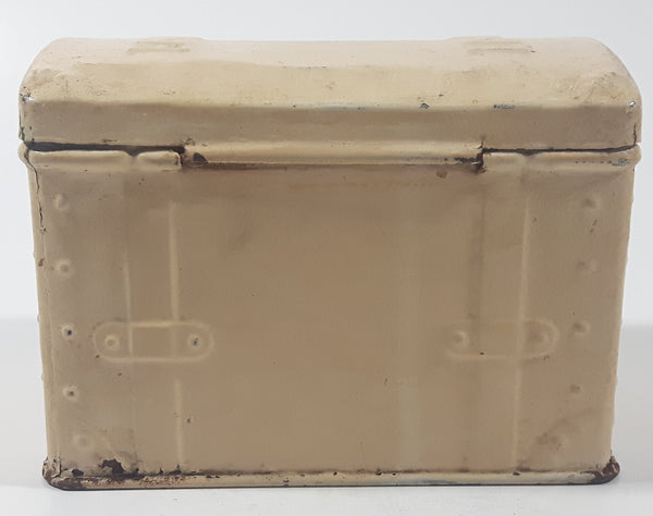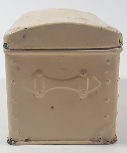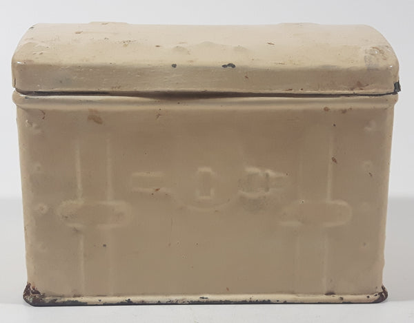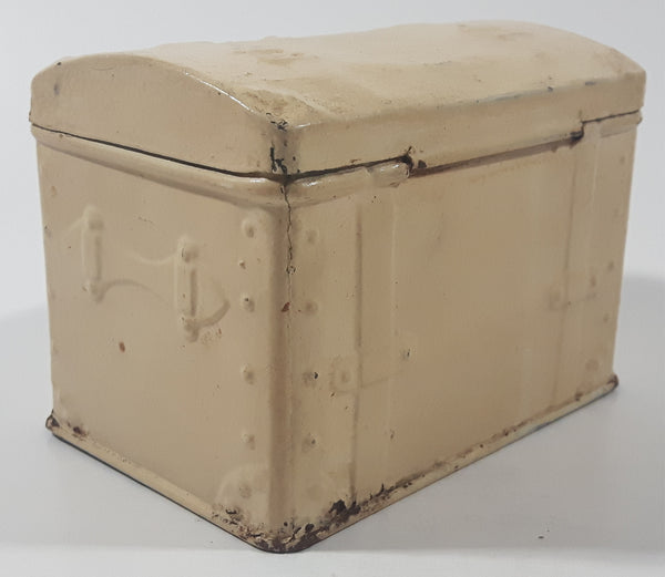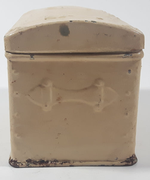 Vintage White Painted 4 3/4" Wide Treasure Chest Style Embossed Metal Recipe Box