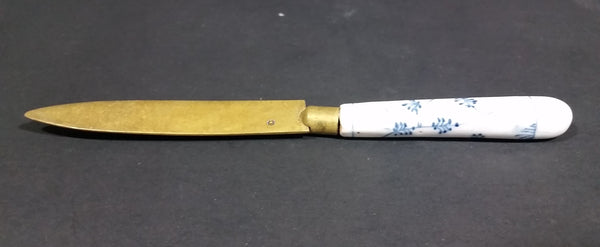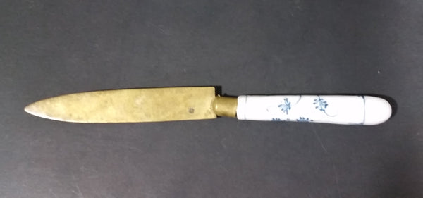 Antique Uchatius Bronce German Bronze Blade Blue & White Porcelain Handle Fruit Knife