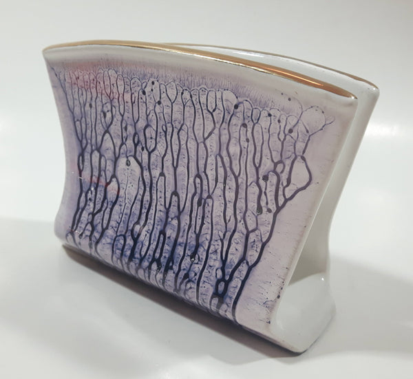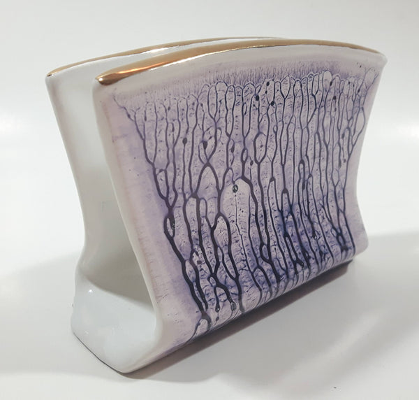 Lavorato A Mano Purple and White Gold Trim Ceramic Napkin Holder