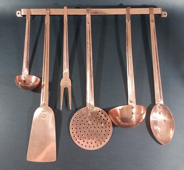 Vintage Copper Kitchen Utensil 7 Piece Set Including Wall Hanging Bar - Made in Taiwan