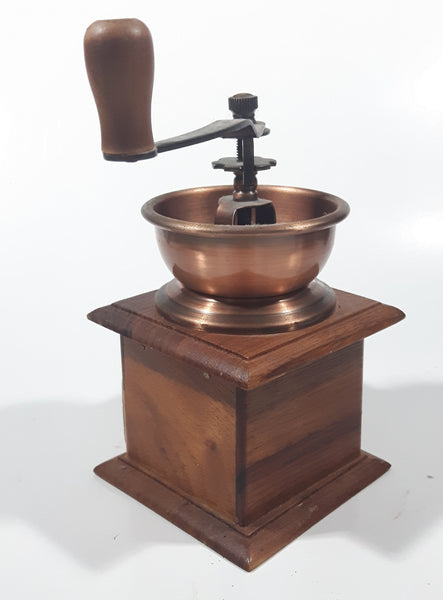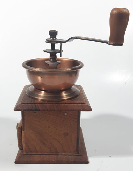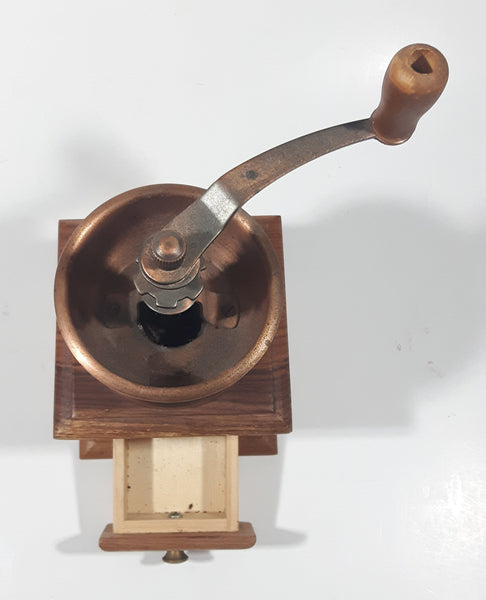 Vintage Style Wood and Copper Toned Metal Coffee Grinder Mill 7 1/2" Tall