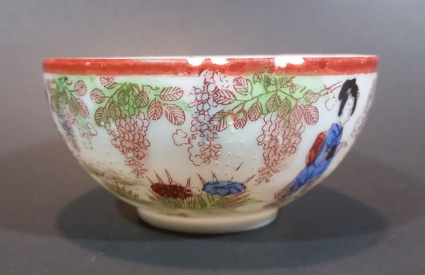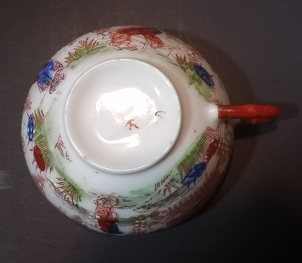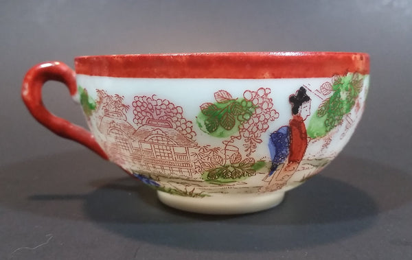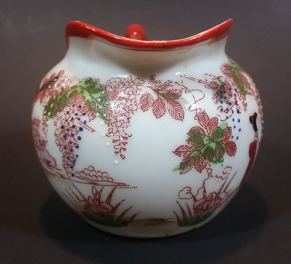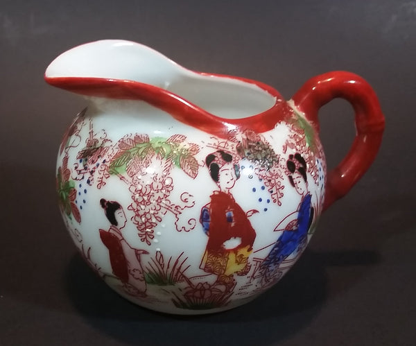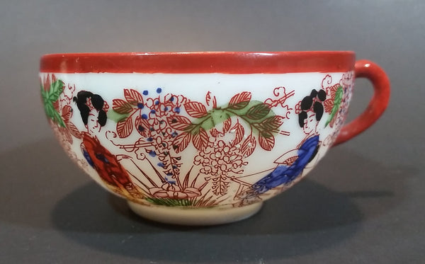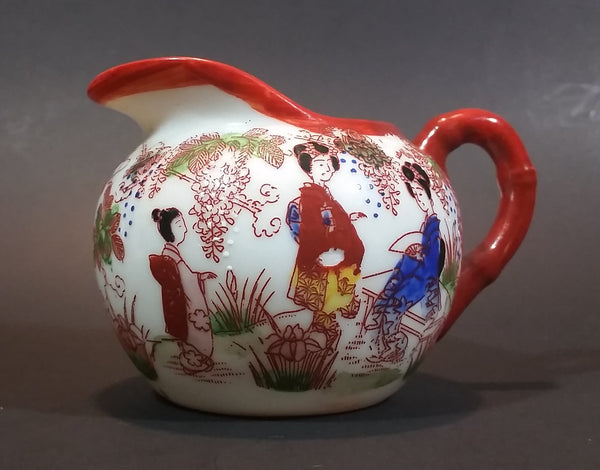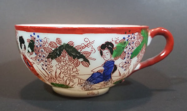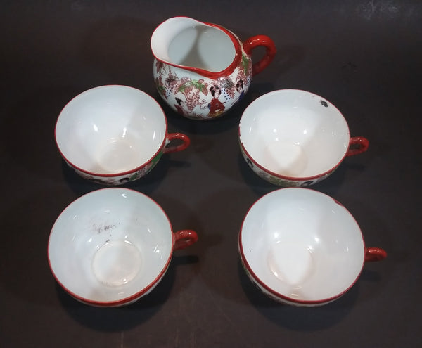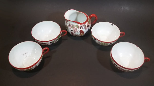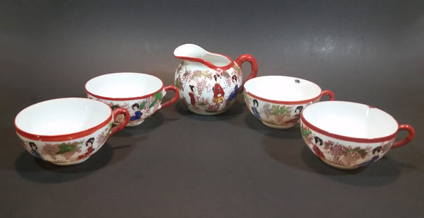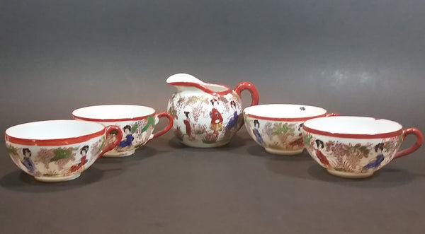 1920s or 1930s Kutani Japan Egg Shell Porcelain Hand Painted Scenery of Japanese Women Creamer and 4 Tea Cup Set