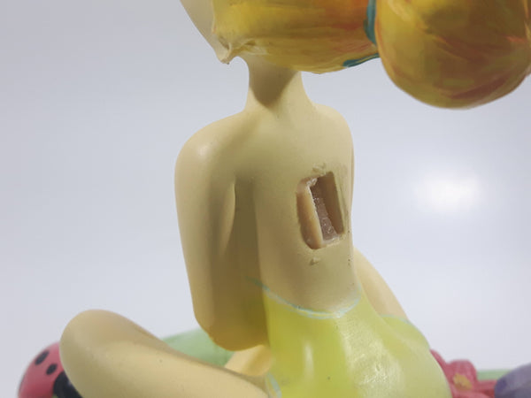 Used. No chips or cracks. Missing the fabric wings from Tinkerbell's back. View photos.