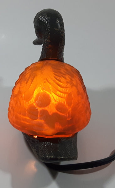 Amber Glass Shelled Bronze Finish Duck Bird Lamp Light