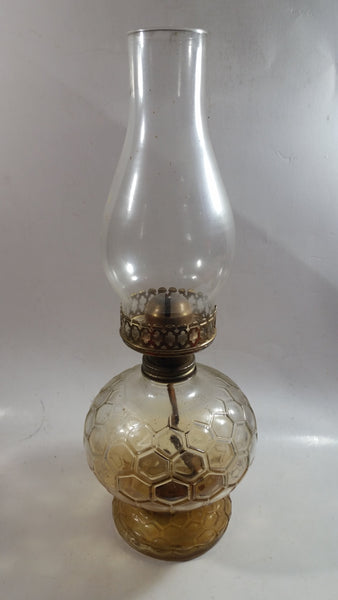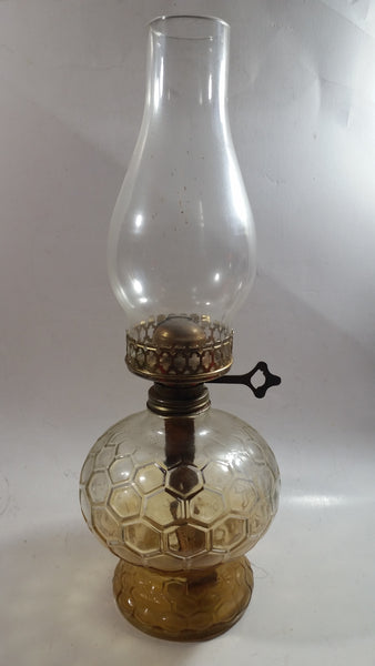 Antique Kerosene Oil Brass and Glass Lamp with Glass Chimney and Honey Comb Base