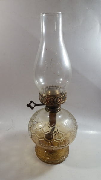 Antique Kerosene Oil Brass and Glass Lamp with Glass Chimney and Honey Comb Base