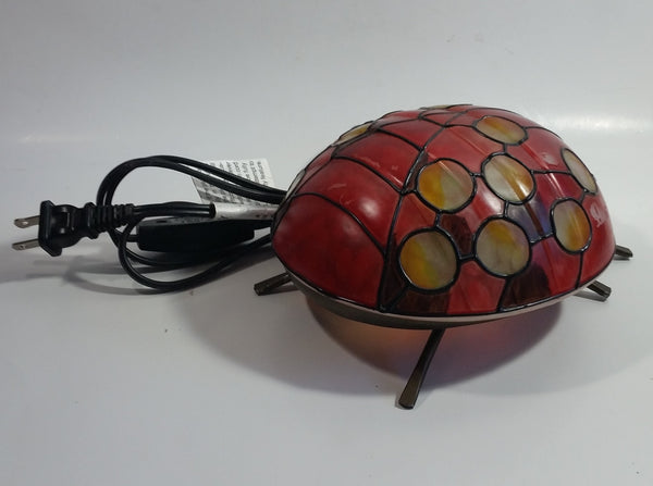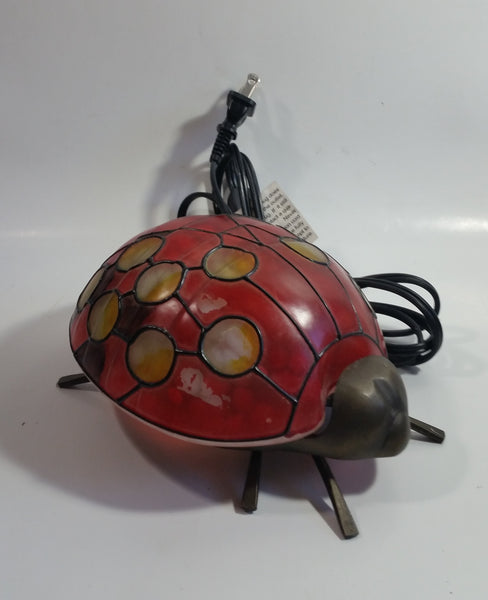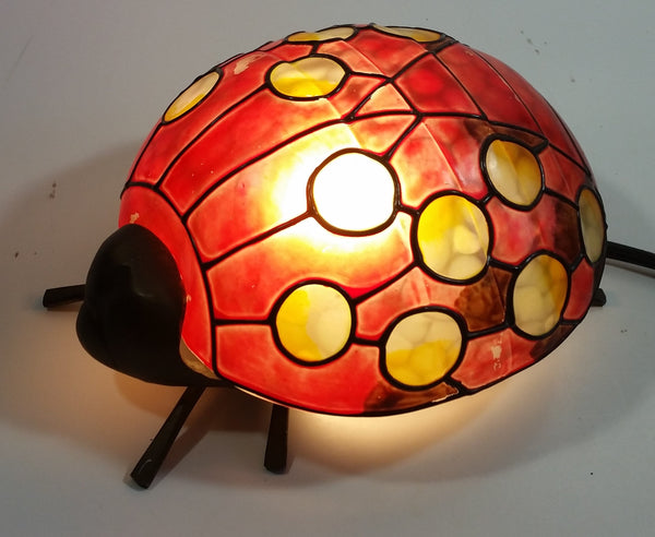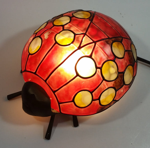 Red with Yellow Dots Painted Glass Bronze Finish Ladybug Ladybird Beetle Lamp Light