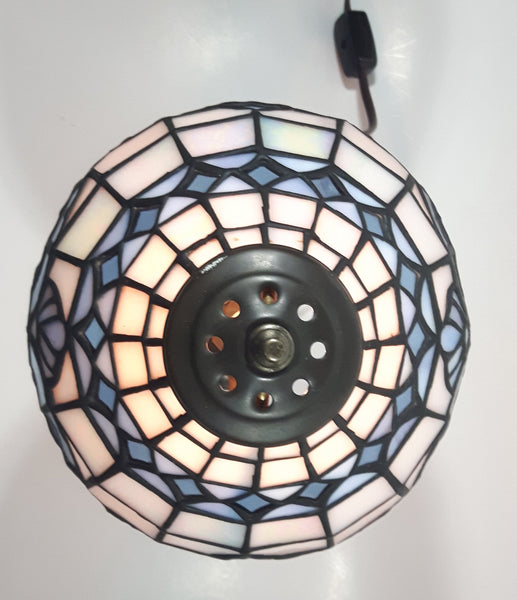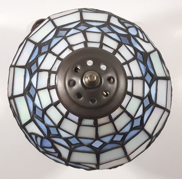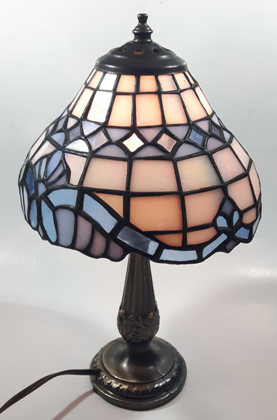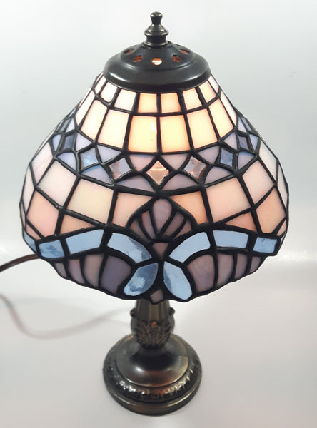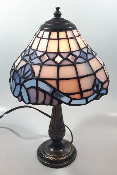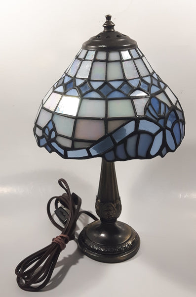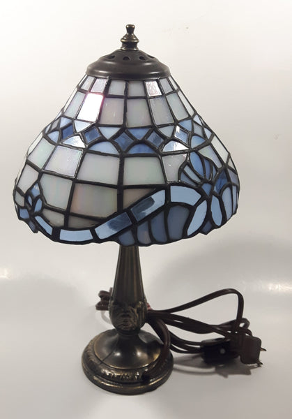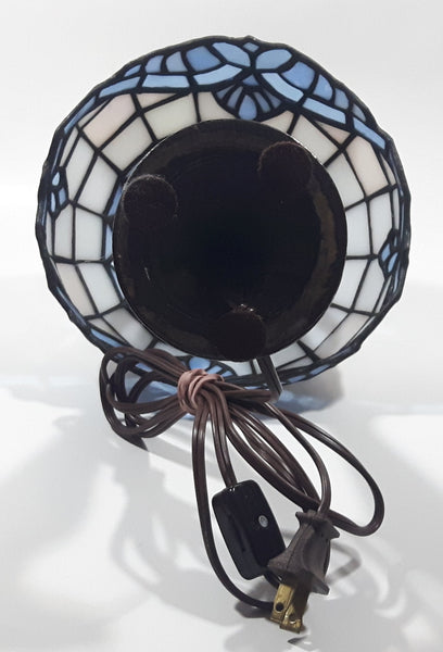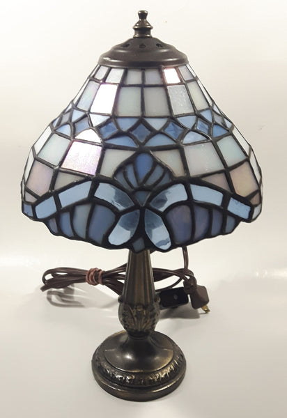 Vintage Blue and White Stained Glass Baroque European Style 11" Tall Brass Metal Table Lamp