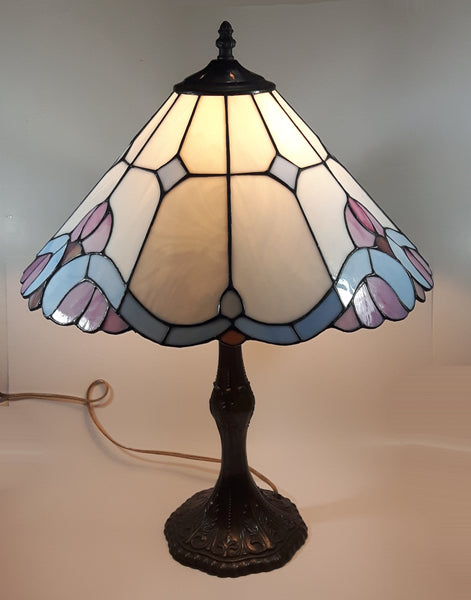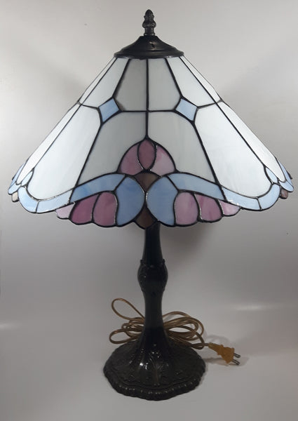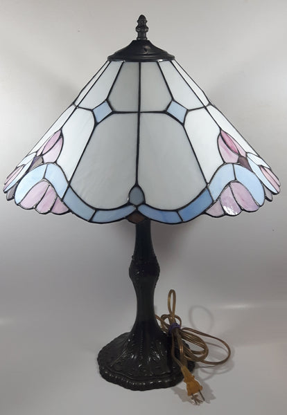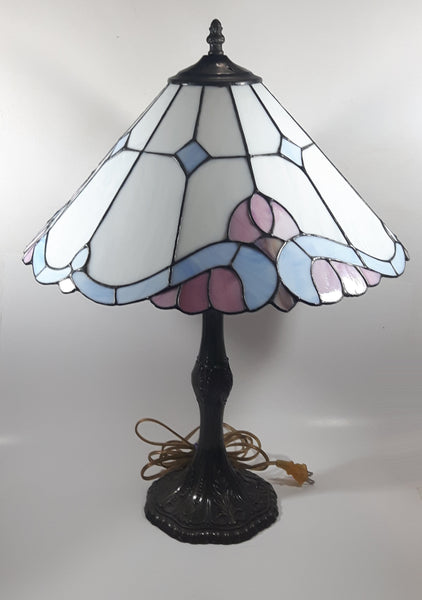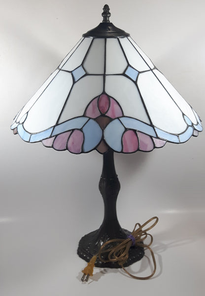 Vintage Blue and White Stained Glass Baroque European Style 23" Tall Brass Metal Table Lamp