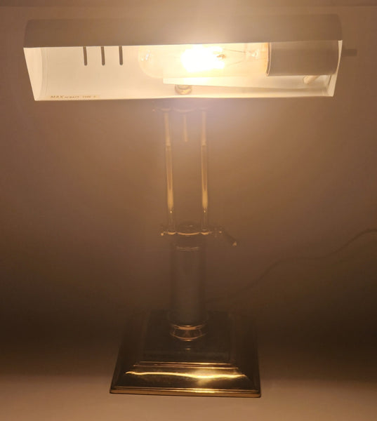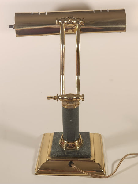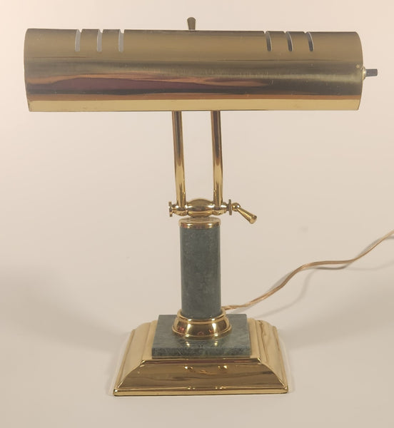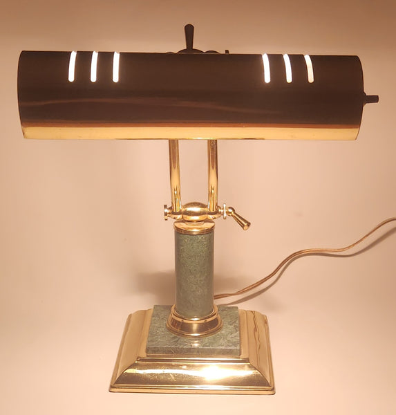 Vintage Green Marble Onyx and Brass 13" Piano Bankers Desk Lamp