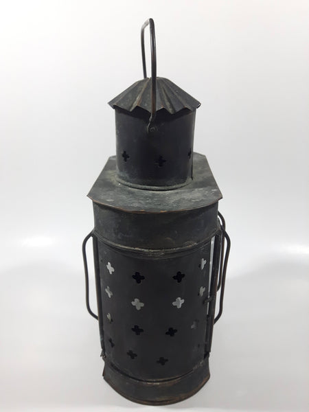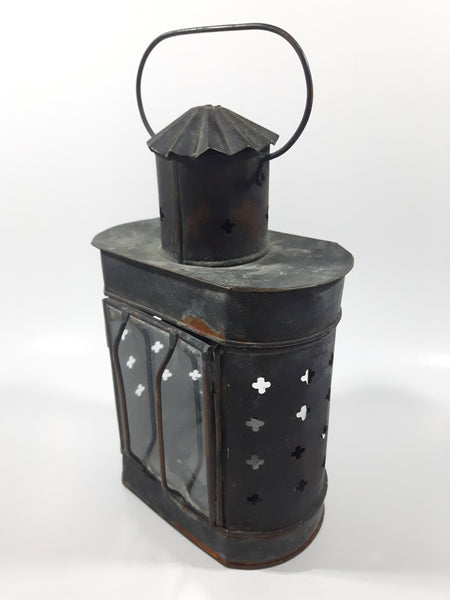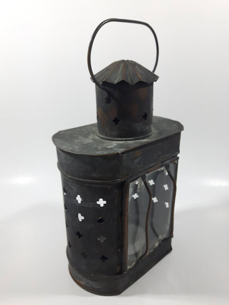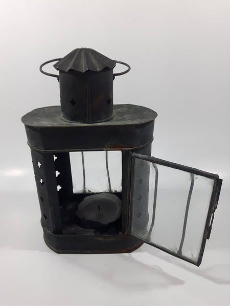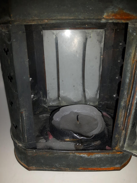 Vintage Metal and Glass 8" Tall Wax Candle Lantern