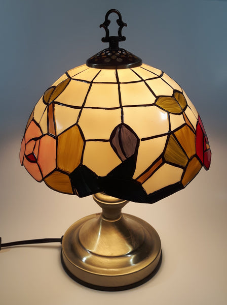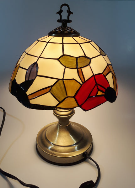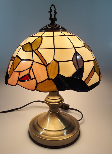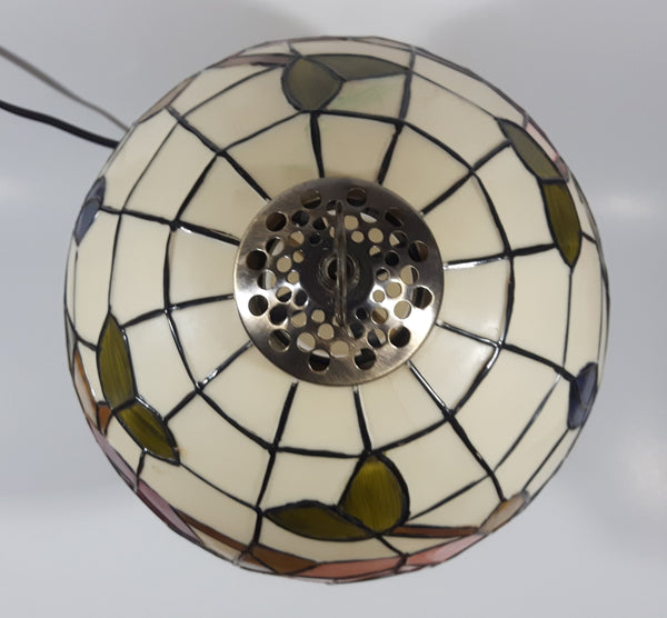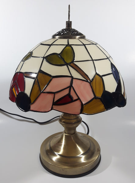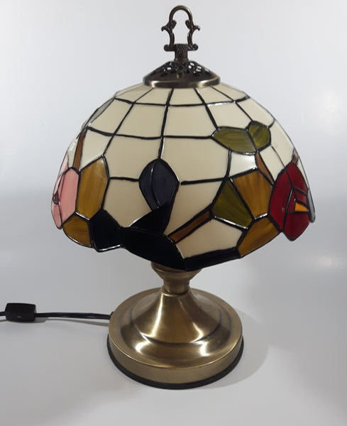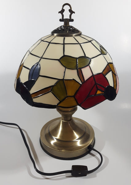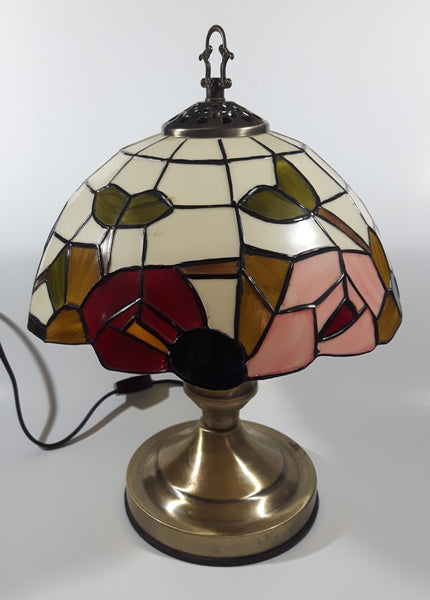 Vintage Plastic Stained Glass Hand Painted Flower Themed 14" Tall Table Lamp Light