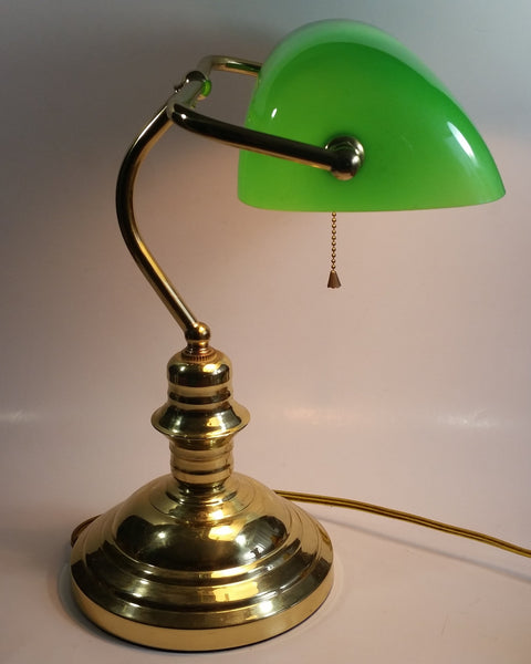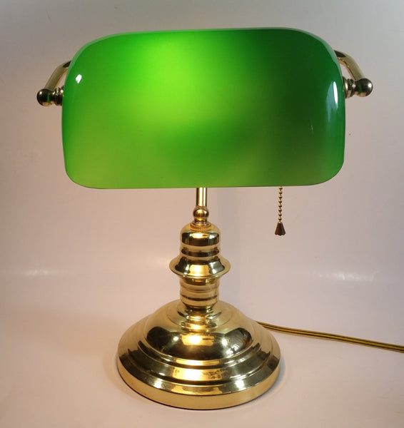 Vintage Style Curved Green Glass on Brass Bankers Desk Lamp 15" Tall