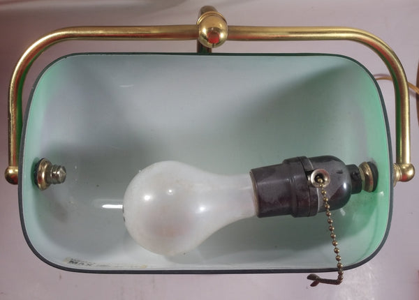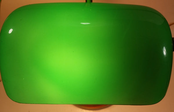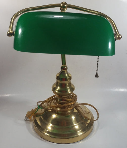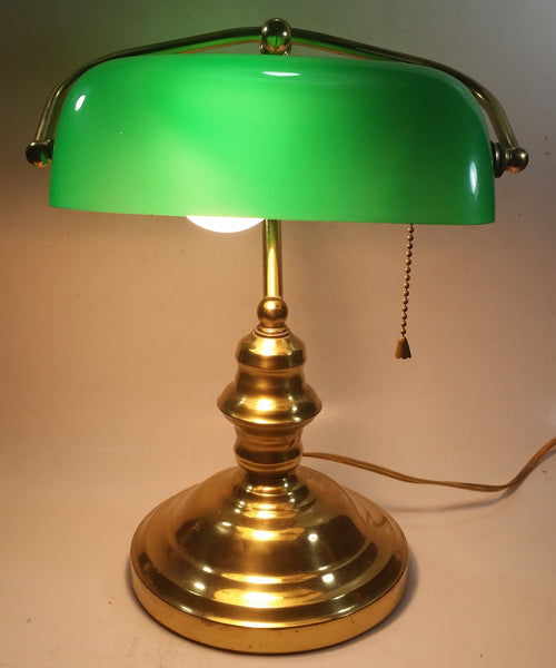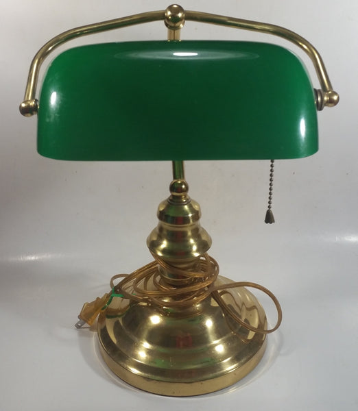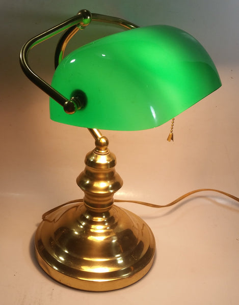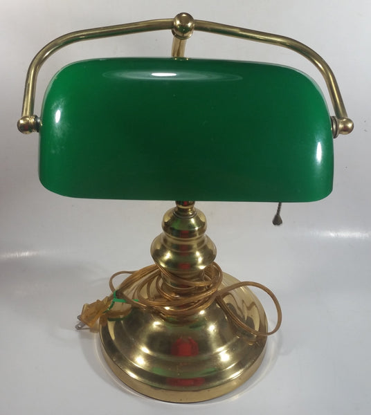 Vintage Style Curved Green Glass on Brass Bankers Desk Lamp 15" Tall