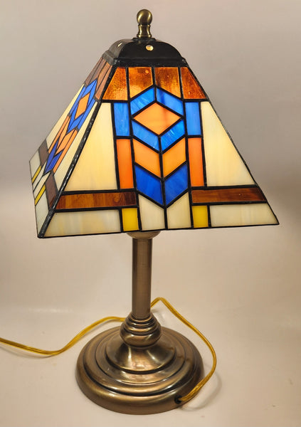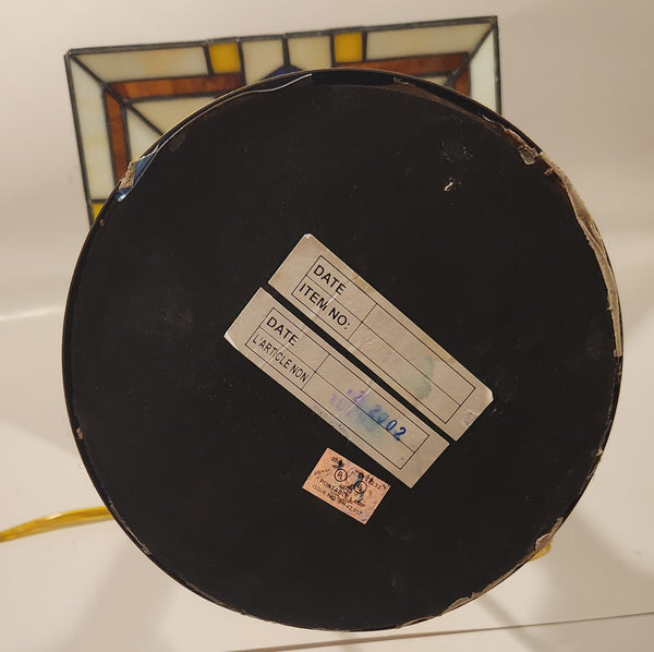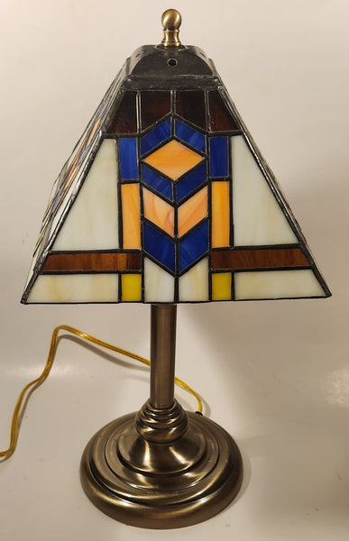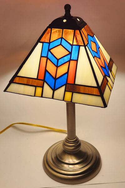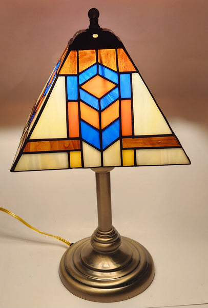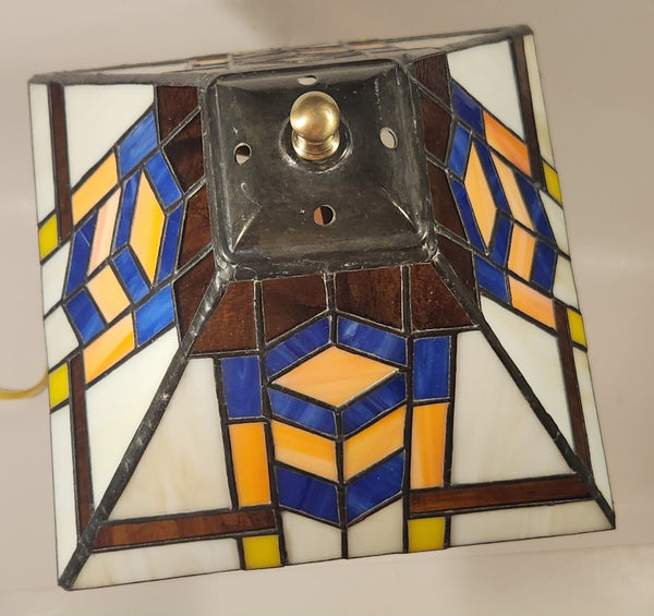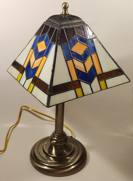 White Blue Art Deco Style 18" Tall Leaded Stained Glass Table Lamp
