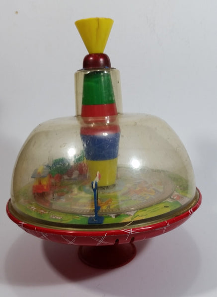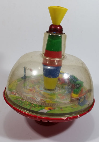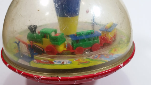 Vintage LBZ Tin Domed Spinning Top Toy Train Theme West Germany (Needs TLC)