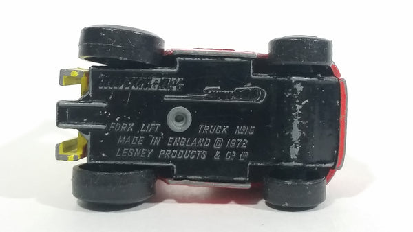 1972 Lesney Products Matchbox Red Yellow Superfast No. 15 Fork Lift Truck Toy Car Warehouse Yard Machinery Vehicle