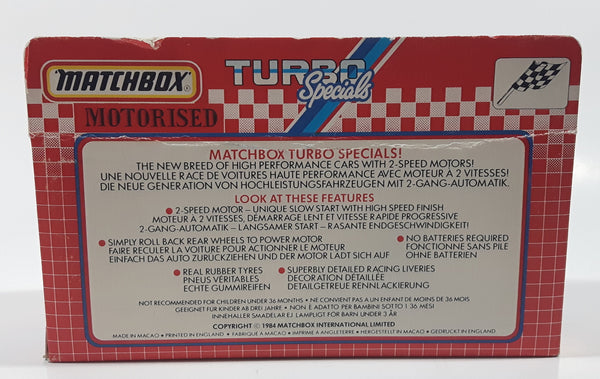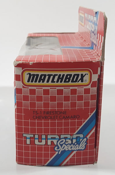 1984 Matchbox Turbo Specials TS-1 Firestone Chevrolet Camaro #4 White 1/43 Scale Die Cast Toy Race Car Vehicle New in Box