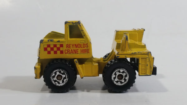 1987 Matchbox Mobile Crane "Reynolds Crane Hire" Yellow Die Cast Toy Car Construction Equipment Vehicle