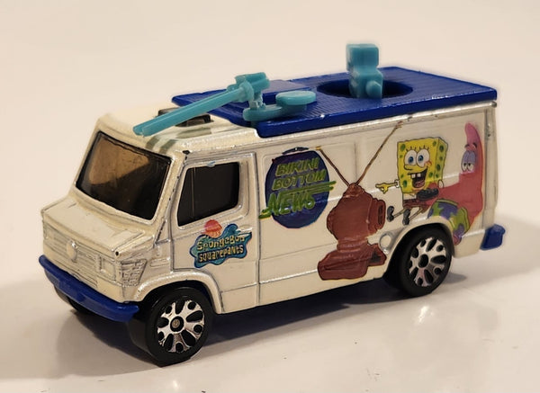 2006 Matchbox Nickelodeon SpongeBob Squarepants Bikini Bottom News TV News Truck Van News 12 Live White and Blue Die Cast Toy Car Vehicle