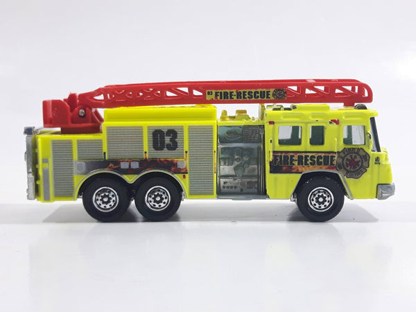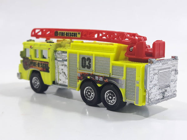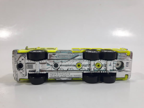 2011 Matchbox Mission Force Fire Crew Pierce Quantum 75' Aerial Ladder Truck Fluorescent Yellow Die Cast Toy Car Vehicle