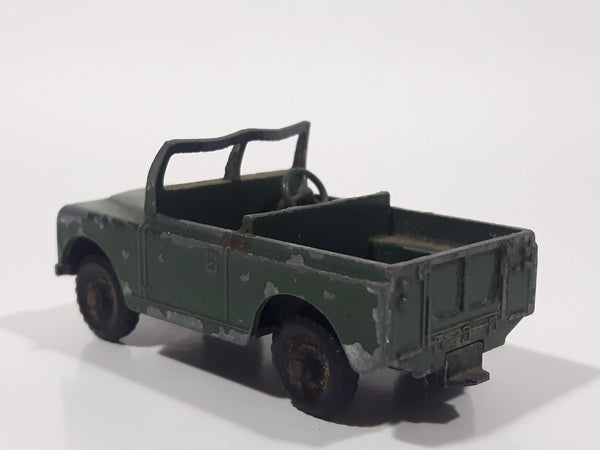 Vintage 1959 to 1965 Lesney No. 12 Land Rover Series II Dark Army Green Die Cast Toy Car Construction Vehicle