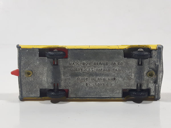 Vintage 1965 Lesney Matchbox Series No. 20 Chevrolet Impala Taxi Cab Yellow Die Cast Toy Car Vehicle