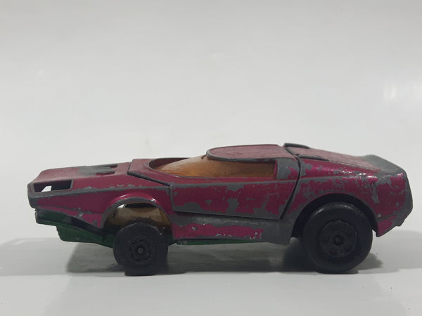 Vintage 1973 Lesney Matchbox Rolamatics No. 39 Clipper Magenta Dark Pink Die Cast Toy Car Vehicle with Opening Canopy