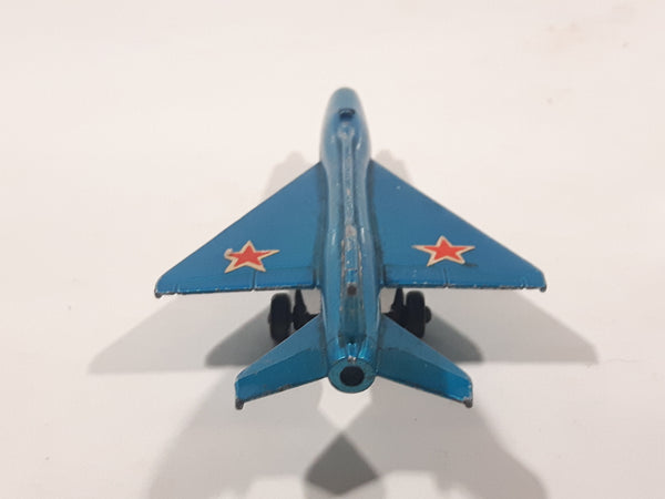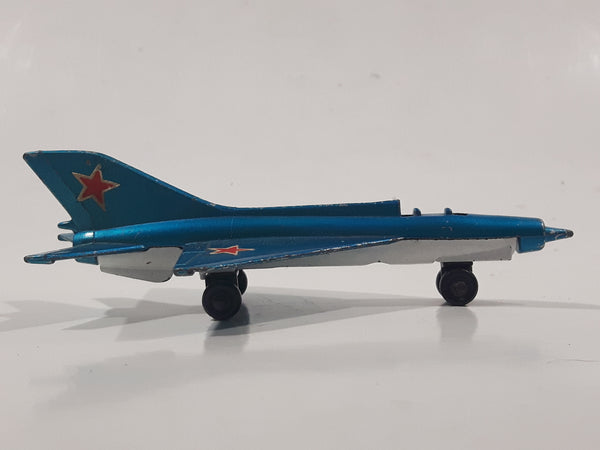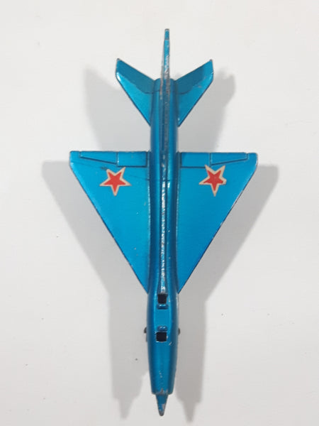 Vintage 1973 Lesney Matchbox Sky Busters SB-6 MIG 21 Fighter Jet Airplane Metallic Blue Die Cast Toy Aircraft