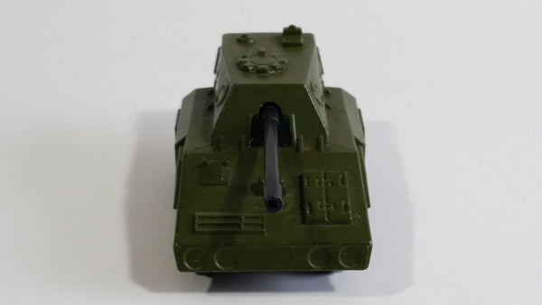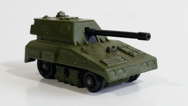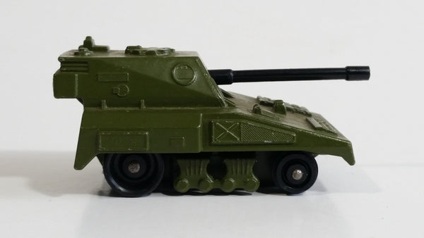 Vintage 1976 Lesney Matchbox Rolamatics No. 70 S.P Gun Tank Army Green Die Cast Toy Car Military Weaponry Vehicle with Moving Gun Made in England