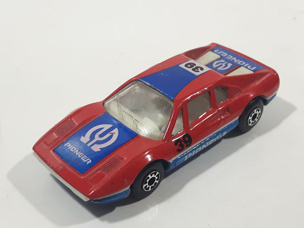 Vintage 1985-88 Matchbox No. 70 Ferrari 308 GTB Pioneer 39 Red Blue Die Cast Toy Race Car Vehicle