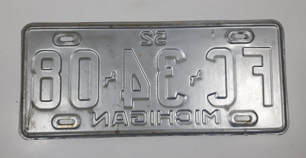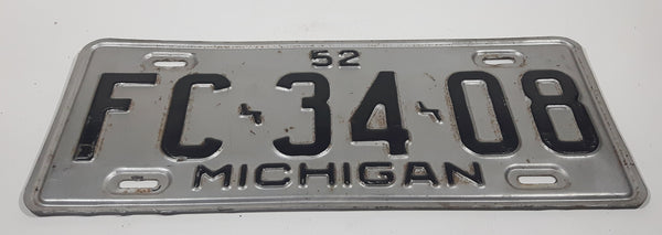 1952 Michigan Silver with Black Letters Metal Vehicle License Plate Tag FC 34 08
