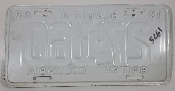 1968 Beautiful British Columbia White with Blue Letters Vehicle License Plate 27 160