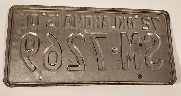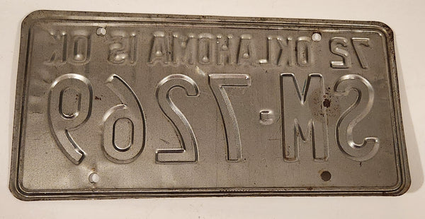 1972 Oklahoma IS OK Green Letters White Vehicle License Plate Tag SM 7269