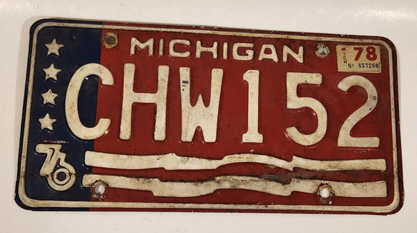 1976 Michigan Bicentennial Red White and Blue American Vehicle License Plate Tag CHW152