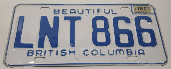 1978 Beautiful British Columbia White with Blue Letters Vehicle License Plate LNT 866