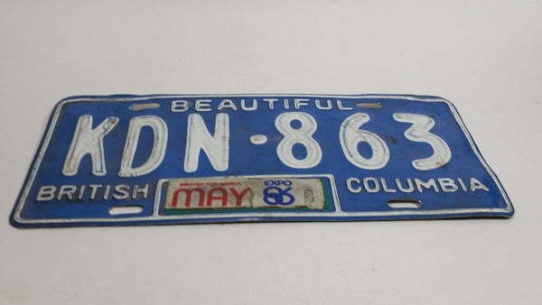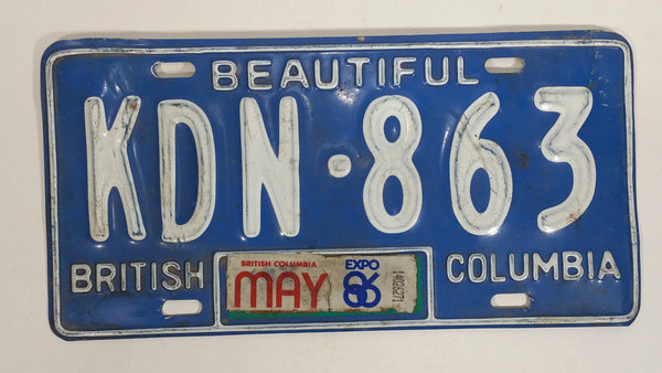 1986 Expo86 Beautiful British Columbia Blue with White Letters Vehicle License Plate - KDN 863